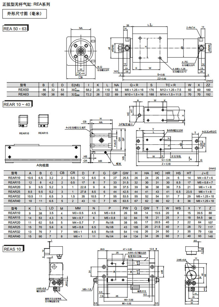 REBS10-150,REBS15-150,REBS20-200,REBS25-200,REBS32-200,REBS40-200,REBS10-200,SMC正弦無桿氣缸