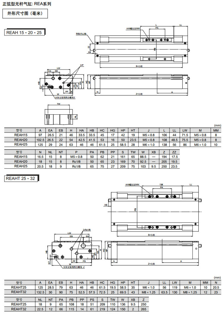 REAR10-150,REAR15-150,REAR20-200,REAR25-200,REAR32-200,REAR40-200,REAR10-200,SMC正弦無桿氣缸