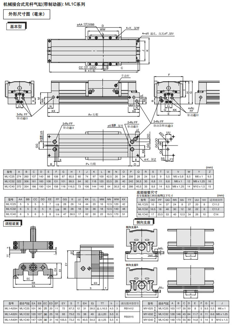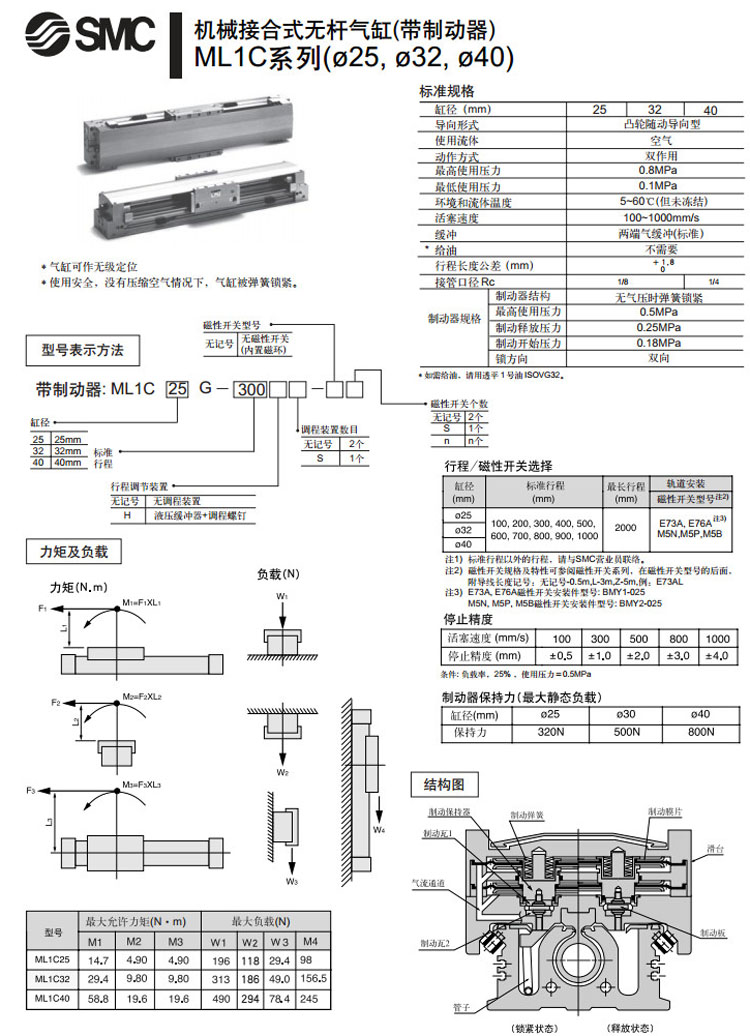 ML1C25G-100,ML1C32G-100,ML1C40G-100,ML1C25G-200,ML1C32G-200,ML1C40G-200,SMC無桿氣缸