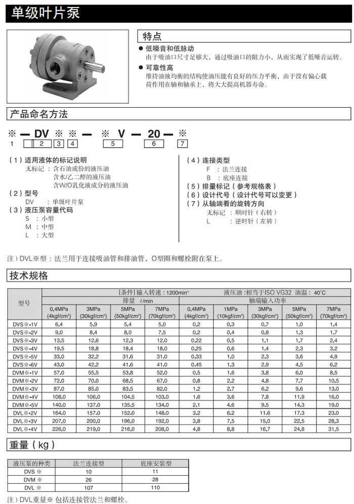 DVSF-1V,DVSF-2V,DVSF-3V,DVSF-4V,DVSF-5V,DVSF-6V,DVSB-1V,DVSB-2V,DVSB-3V,DVSB-4V,DAIKIN單級葉片泵