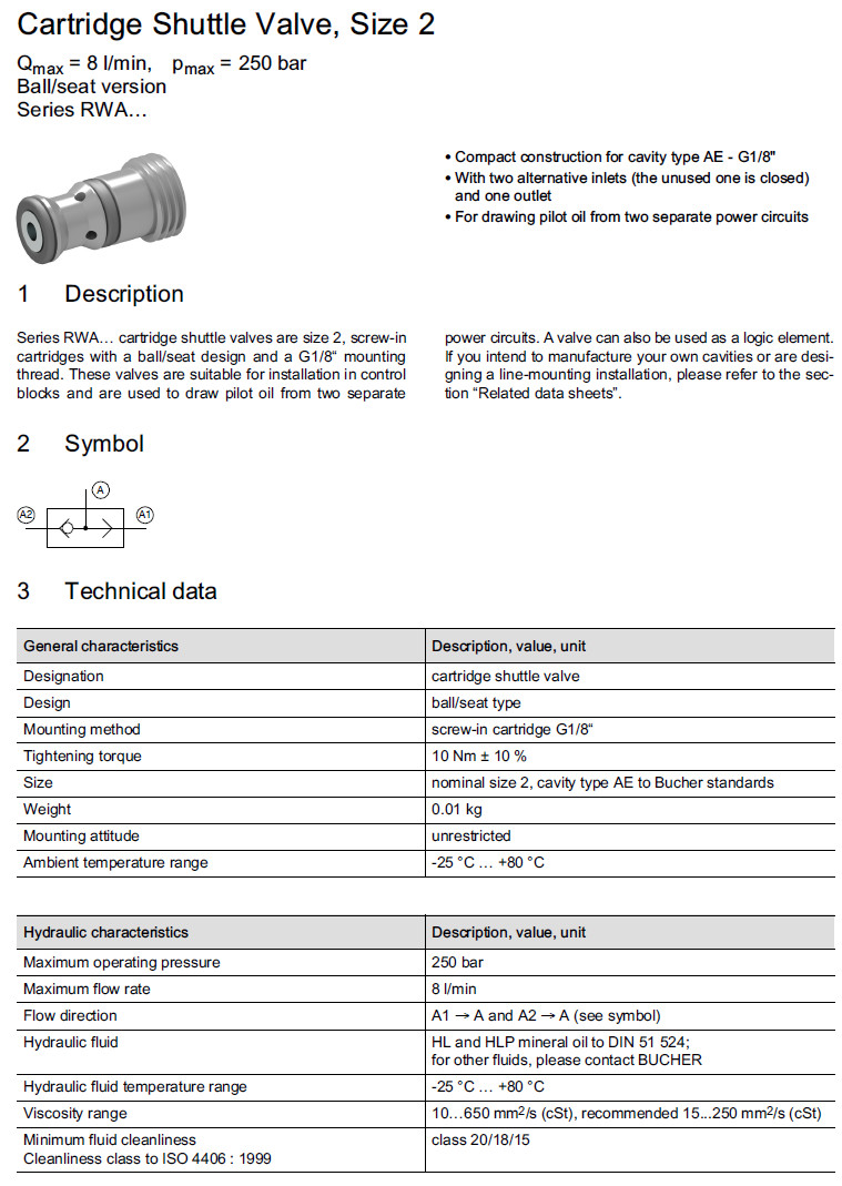 RWA-2-1,RWA-2V-1,Bucher插裝閥