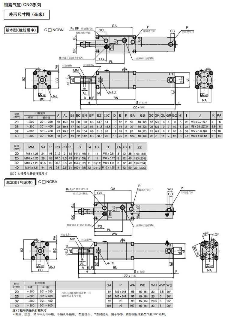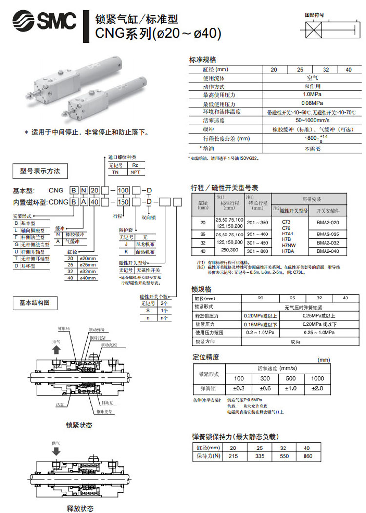 CDNGBN20,CDNGLN20,CDNGFN20,CDNGGN20,CDNGUN20,CDNGTN20,CDNGDN20,CDNGBN20-25,CDNGBA20-25,SMC標(biāo)準(zhǔn)型鎖緊氣缸