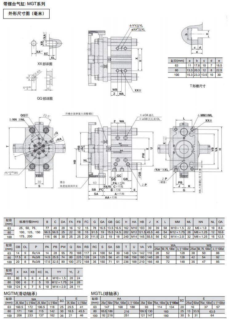 MGTM63-25,MGTM80-25,MGTM100-25,MGTL63-25,MGTL80-25,MGTL100-25,MGTM63-50,SMC帶擺臺(tái)氣缸