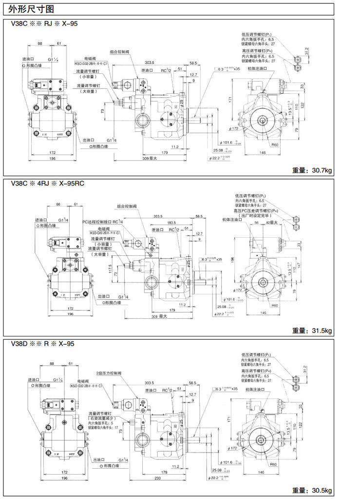 JS,V38A1RX-95,V38C11RHX-95,V38D11RAX-95,V38SA1ARX-95,DAIKIN柱塞泵