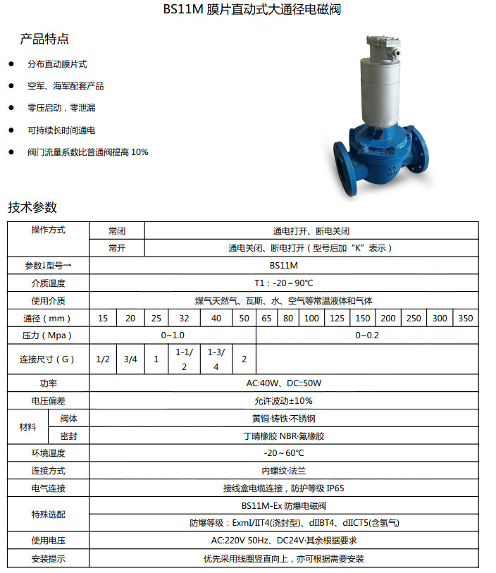 BS11M-DN15,BS11M-DN20,BS11M-DN25,BS11M-DN32,膜片直動式大通徑電磁閥