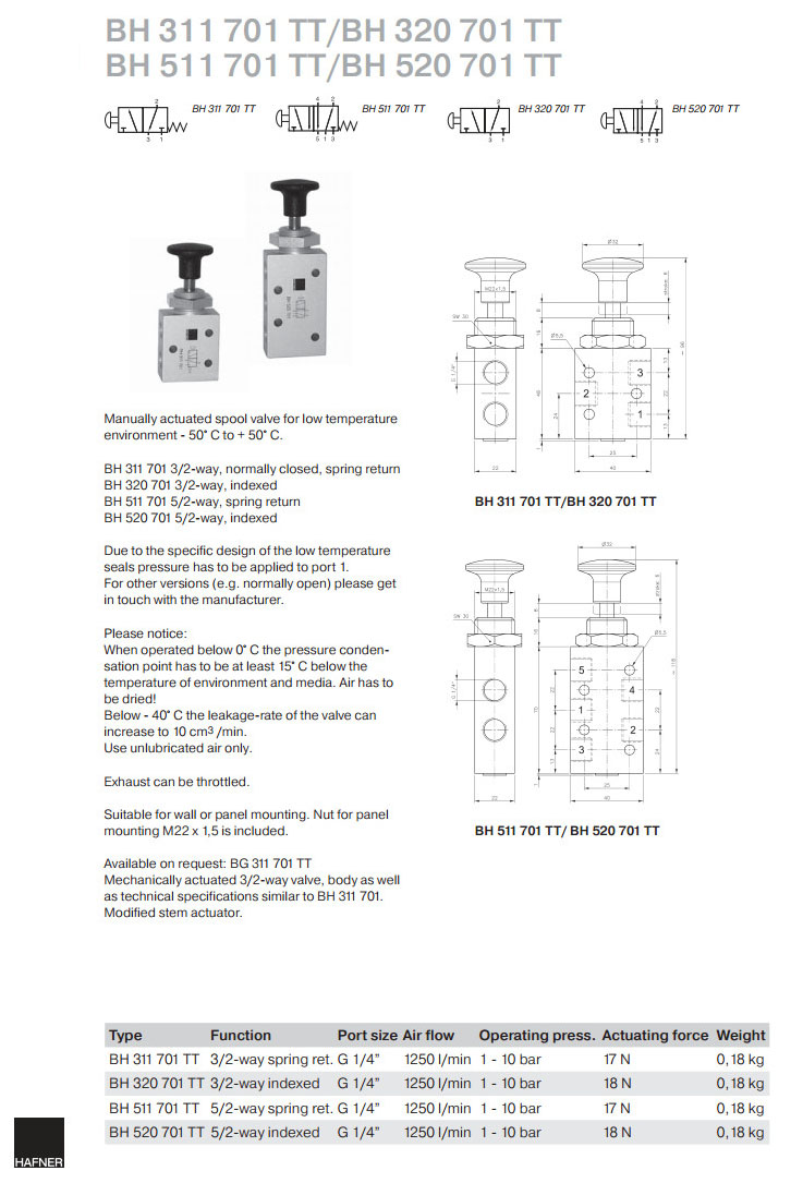 BH311701TT,BH320701TT,BH511701TT,BH520701TT,Hafner滑閥