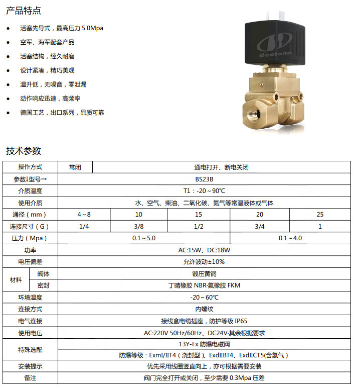 BS23B-DN4,BS23B-DN8,BS23B-DN10,BS23B-DN15,BS23B-DN20,BS23B-DN25,活塞先導(dǎo)式高壓電磁閥