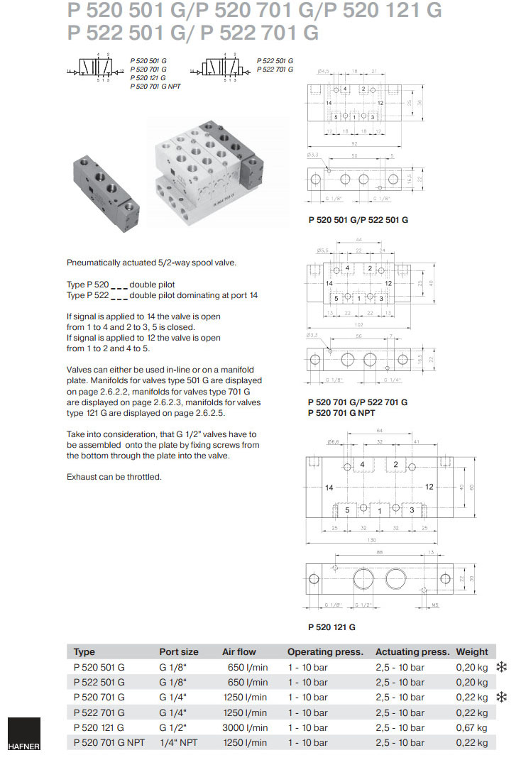 P520501G,P522501G,P520701G,P522701G,P520121G,P522701GNPT,Hafner滑閥