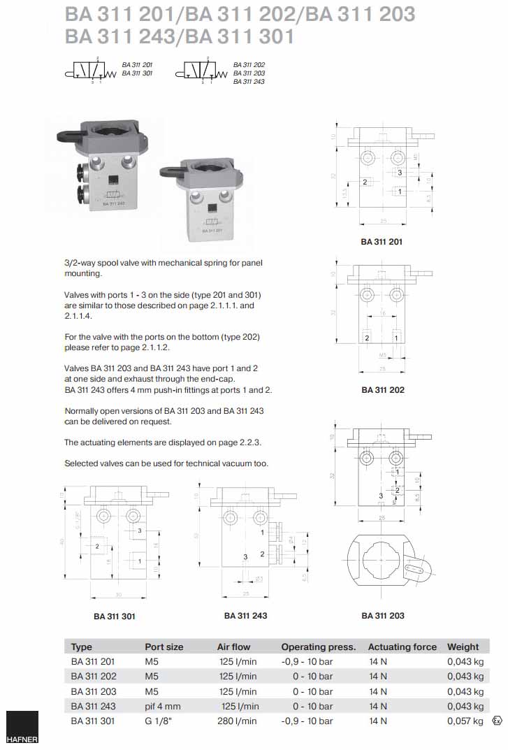 BA311201,BA311202,BA311203,BA311243,BA311301,Hafner滑閥