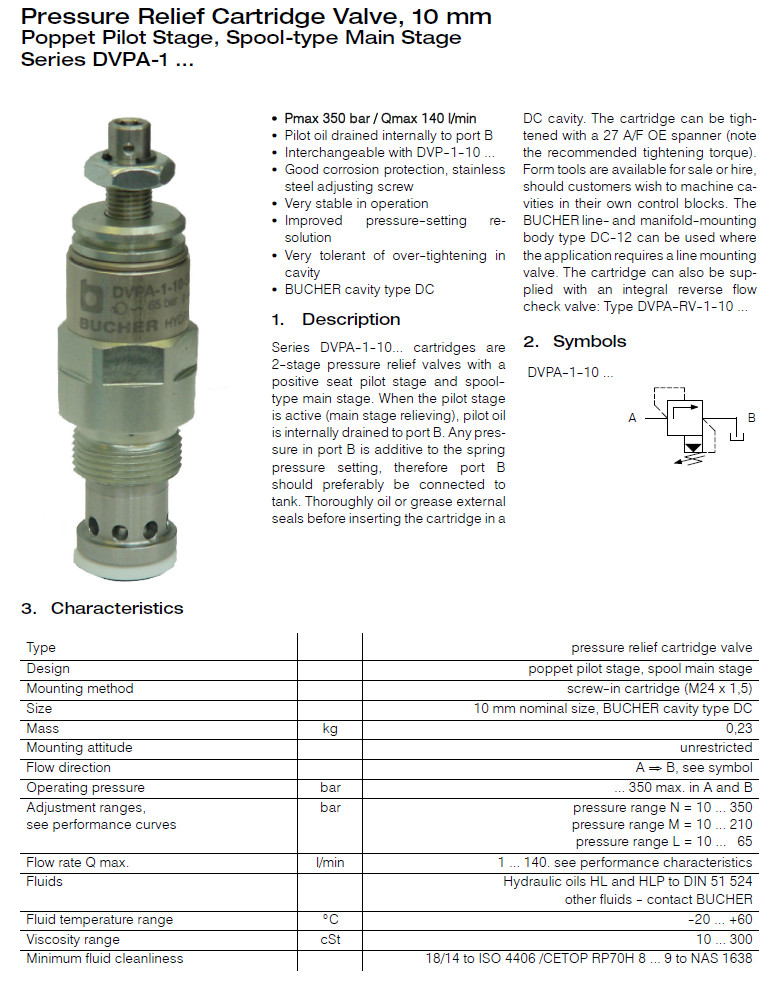 DVPA-1-10-SN-3,DVPA-1-10-HN-3,DVPA-1-10-ZM-2,DVPA-1-10-SL-3,Bucher壓力控制閥