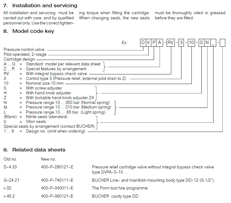 DVPA-RV-1-10-SN-3,DVPA-RV-1-10-SM-3,DVPA-RV-1-10-SL-3,Bucher壓力控制閥