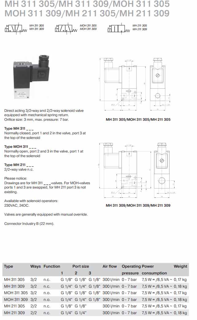MH311305,MH311309,MOH311305,MOH311309,MH211305,MH211309,Hafner電磁閥