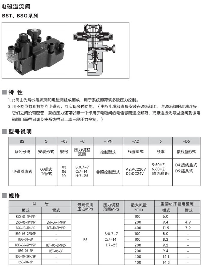 BSG-03,BSG-06,BSG-10,BSG-03-B-1PN-A2-5-D4,BSG-03-C-1PN-A2-5-D4,電磁溢流閥