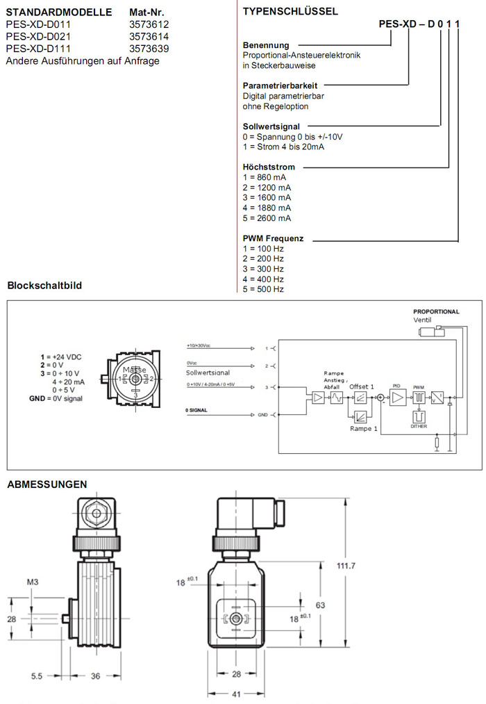 PES-XD-D011,PES-XD-D021,PES-XD-D111,HYDAC電子控制比例閥