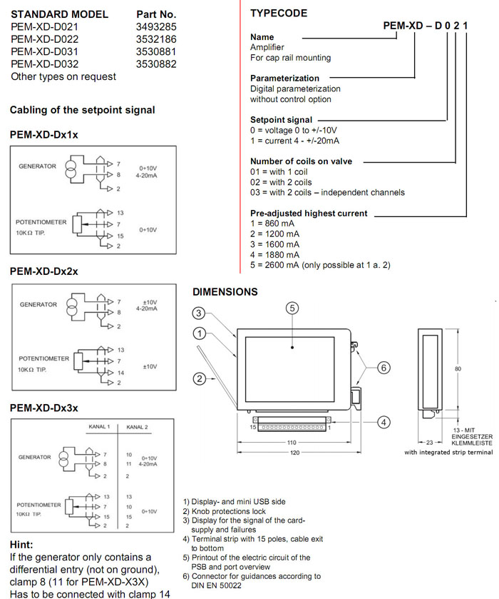 PEM-XD-D021,PEM-XD-D022,PEM-XD-D031,PEM-XD-D032,HYDAC電子控制比例閥