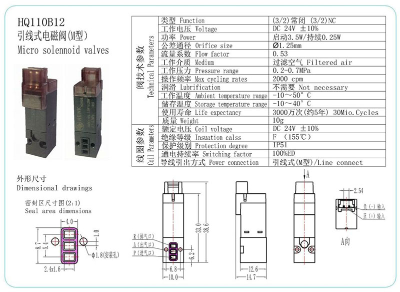HQ110B11,HQ110B12,引線式電磁閥