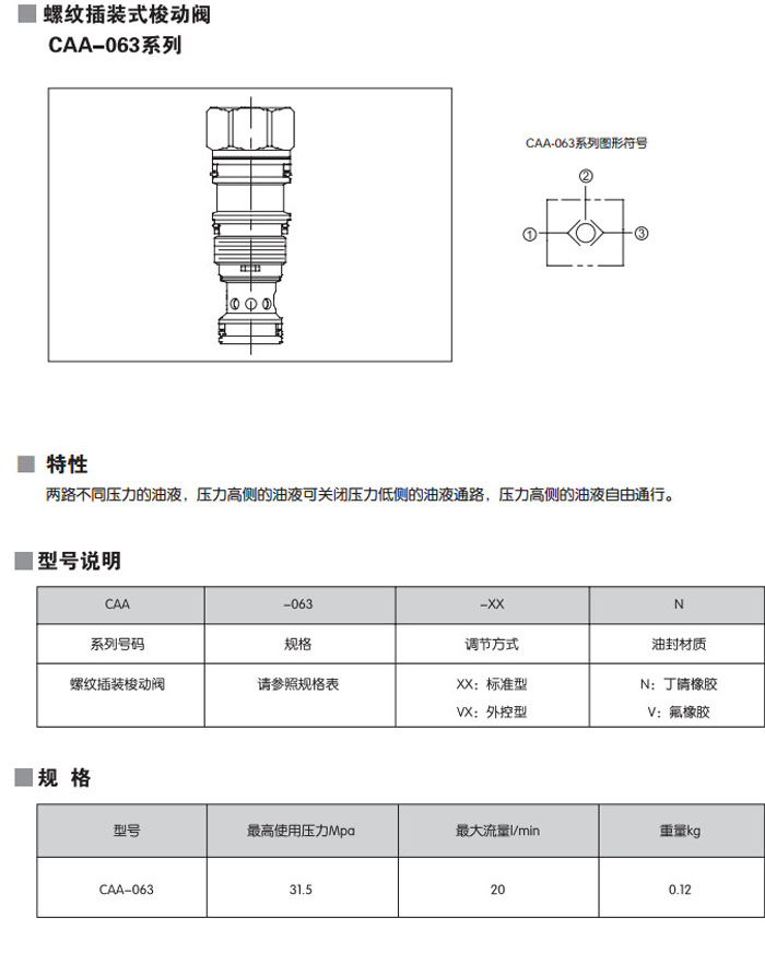 CAA-063-XXN,CAA-063-XXV,CAA-063-VXN,CAA-063-VXV,螺紋插裝式梭動閥