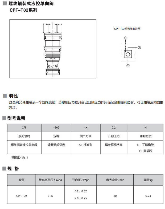 CPF-T02-X0.2N,CPF-T02-X0.2V,CPF-T02-X2.0N,CPF-T02-X2.0V,螺紋插裝式液控單向閥