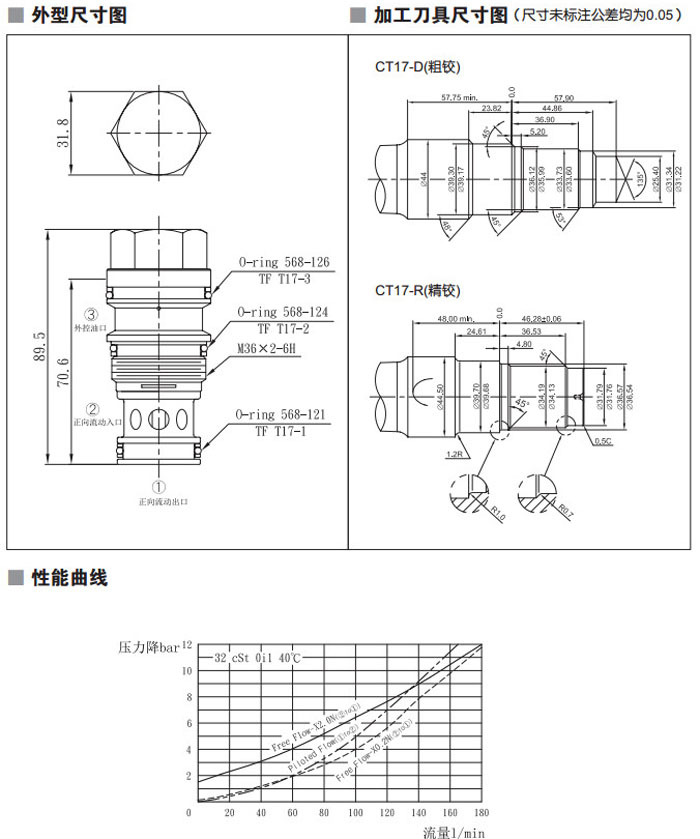 CPF-T17-X0.2N,CPF-T17-X0.2V,CPF-T17-X2.0N,CPF-T17-X2.0V,螺紋插裝式液控單向閥