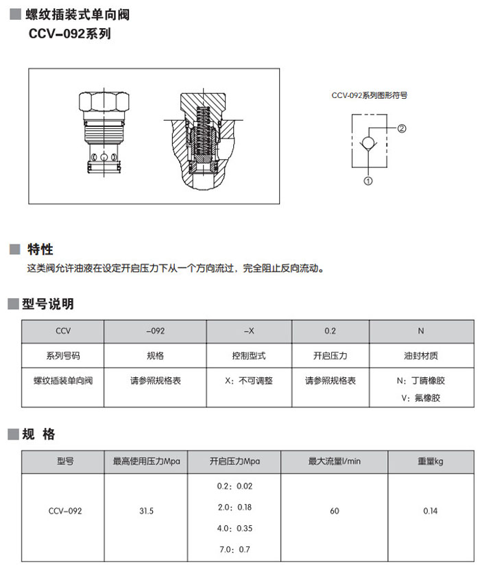 CCL-092-X0.2N,CCL-092-X2.0N,CCL-092-X0.2V,CCL-092-X2.0V,螺紋插裝式單向閥