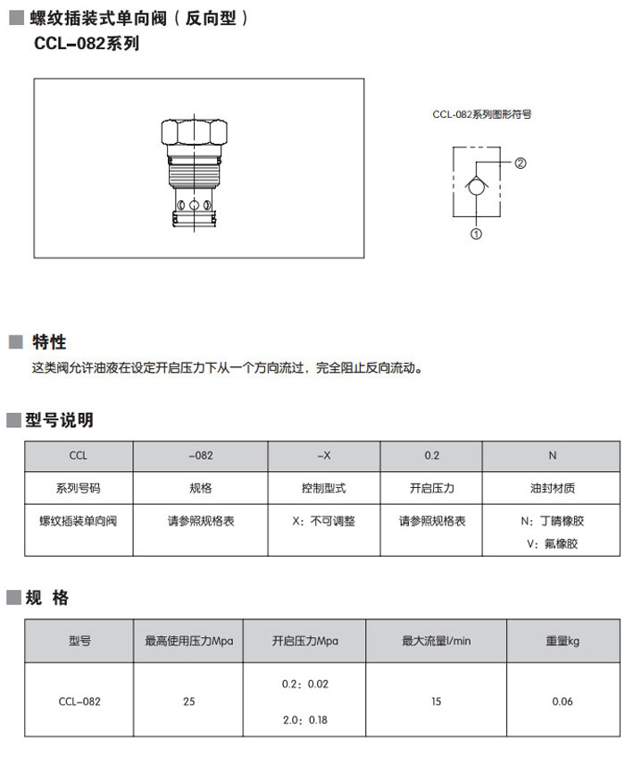 CCL-082-X0.2N,CCL-082-X2.0N,CCL-082-X0.2V,CCL-082-X2.0V,螺紋插裝式單向閥
