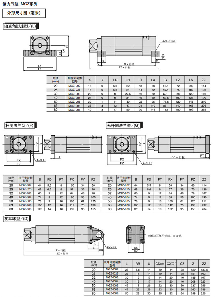 MGZ20Z-100,MGZ20Z-125,MGZ20Z-150,MGZ20Z-175,MGZ20Z-200,MGZ20Z-250,MGZ20Z-300,