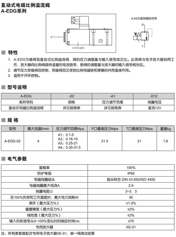 A-EDG-02-A1-D12,A-EDG-02-A2-D12,A-EDG-02-A3-D12,A-EDG-02-A4-D12,直動(dòng)式電磁比例溢流閥