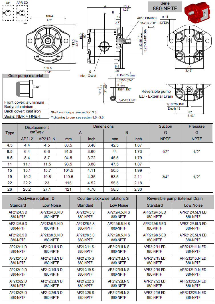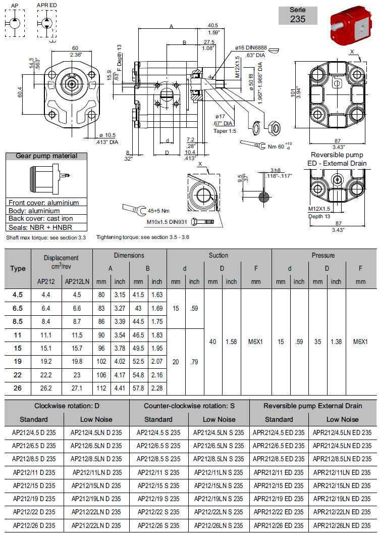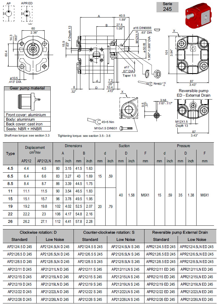 AP212/4.5,AP212/6.5,AP212/8.5,AP212/11,AP212/15,AP212/22,Bucher外嚙合齒輪泵 |