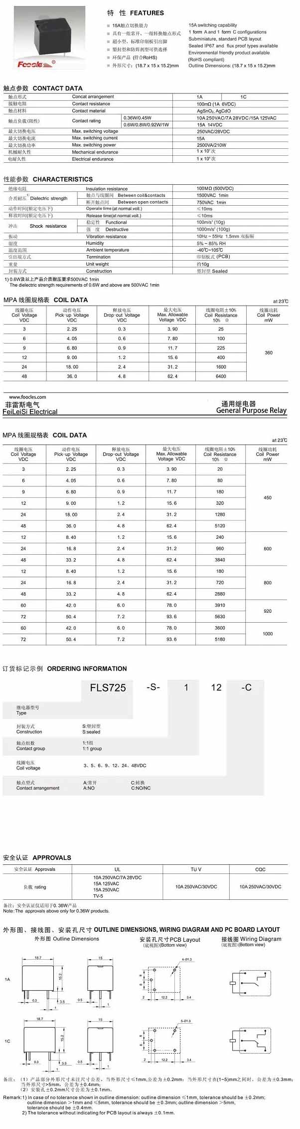 FLS820-15,汽車繼電器