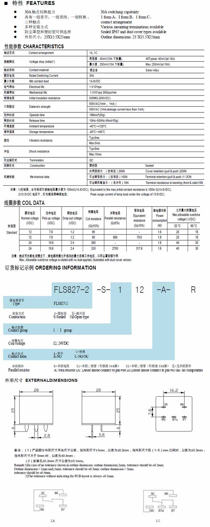 FLS827-2,汽車繼電器