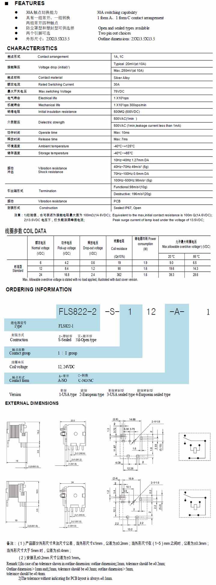 FLS822-2,汽車繼電器