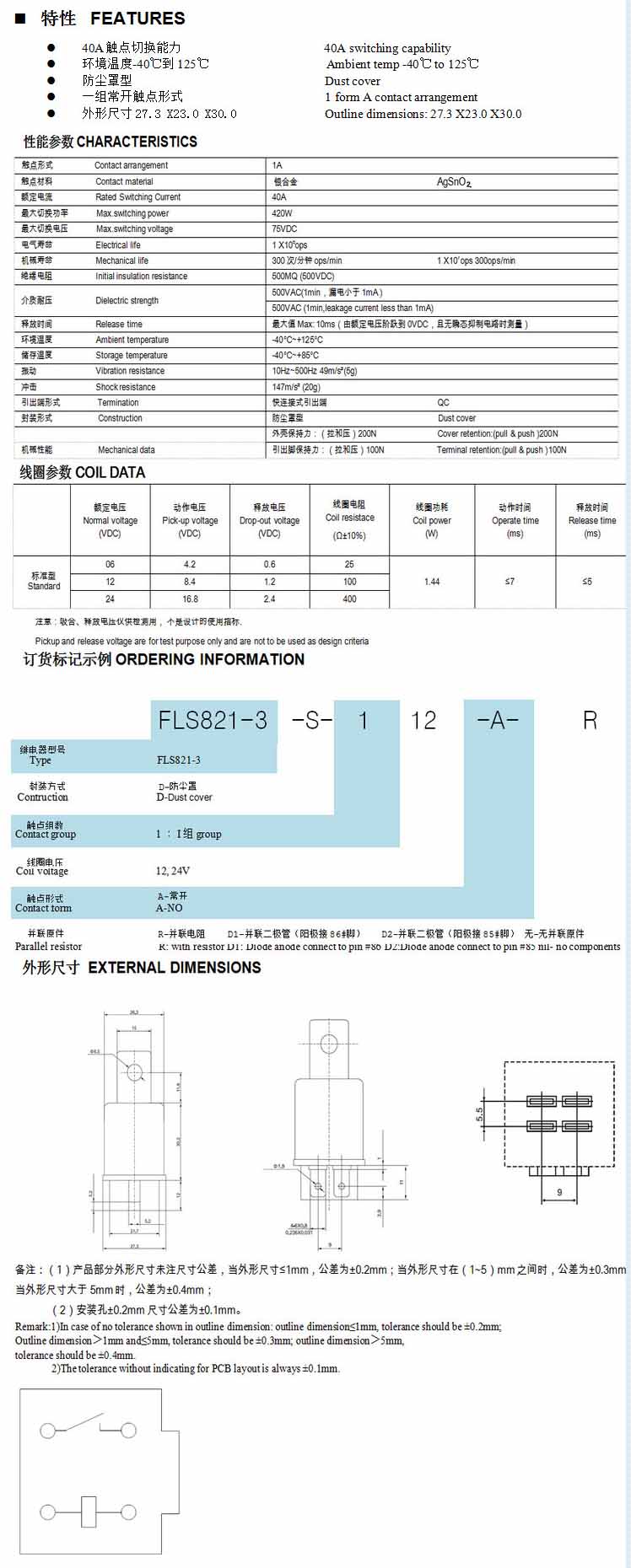 FLS821-3,汽車?yán)^電器
