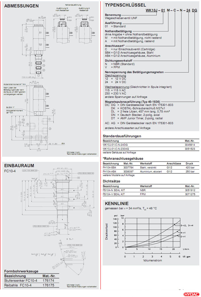 WK10J-01M-C-N-24DG,WK10J-01A-C-N-230AG,HYDAC電磁4/3方向滑閥