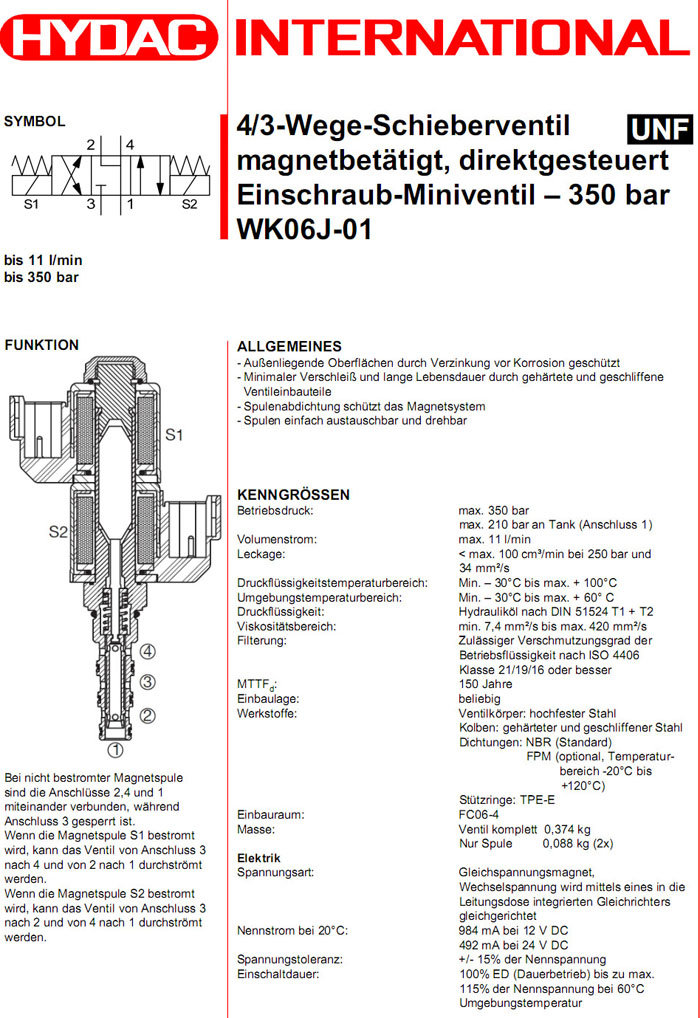 WK06J-01-C-N-0,WK06J-01M-C-N-0,WK06J-01A-C-N-0,HYDAC電磁4/3方向滑閥