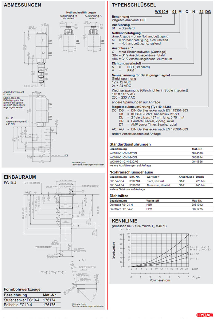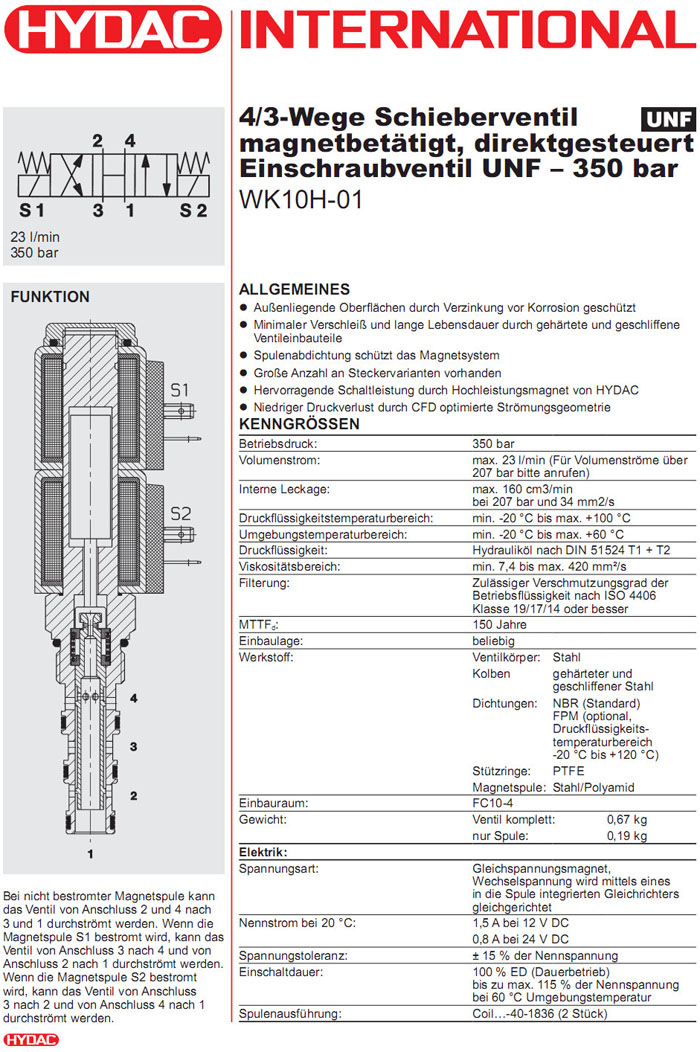 WK10H-01-C-N-12DG,WK10H-01M-C-N-24DG,WK10H-01A-C-N-230AG,HYDAC電磁4/3方向滑閥 |