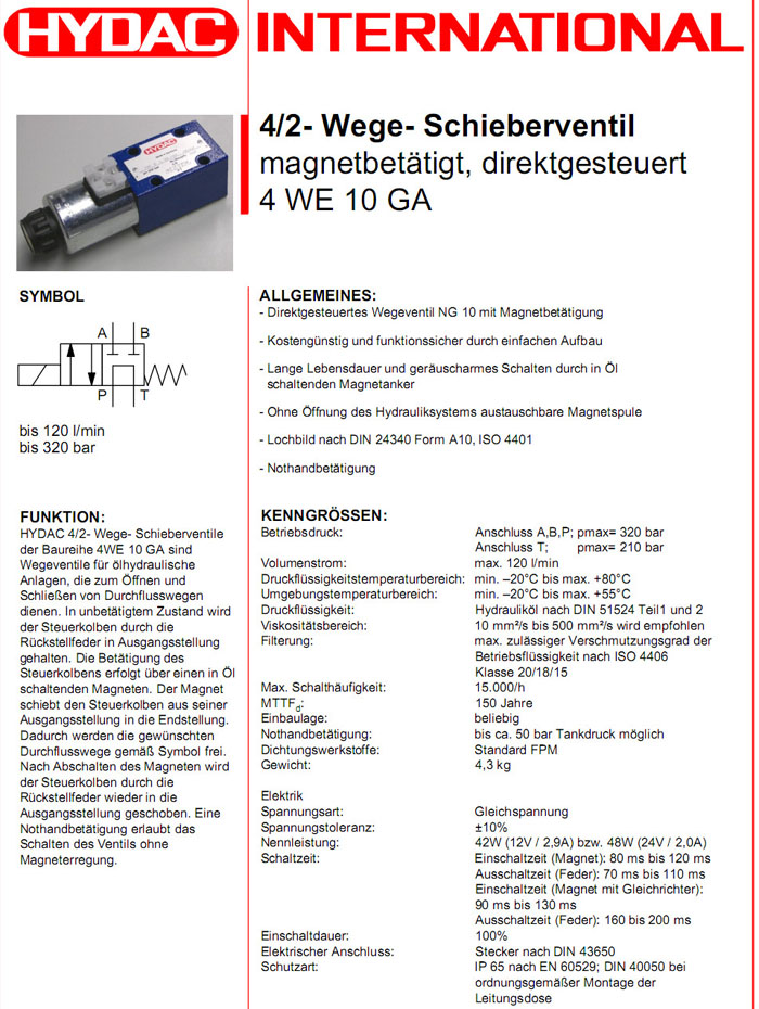 4WE10GAS01-12DG/V,4WE10GAS01-24DG/V,HYDAC電磁4/2方向滑閥