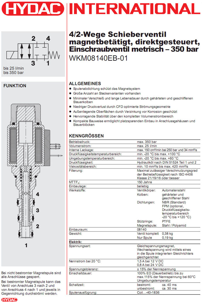 WKM08140EB-01-C-N-24DG,WKM08140EB-01-C-N-230AG,HYDAC電磁4/2方向滑閥